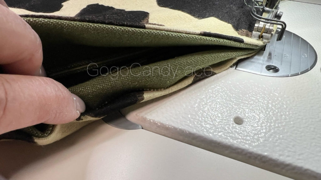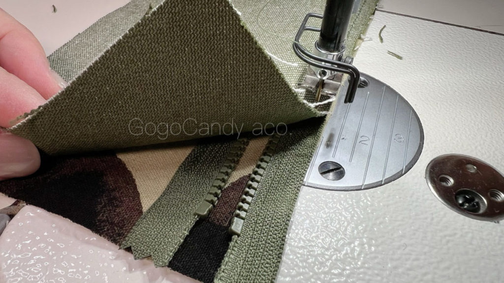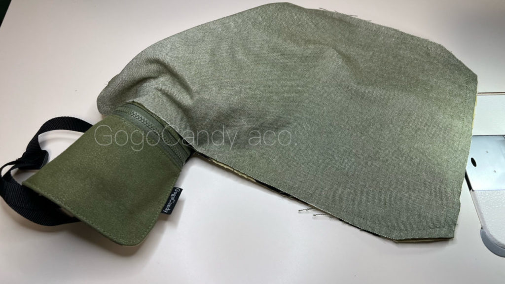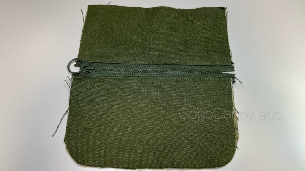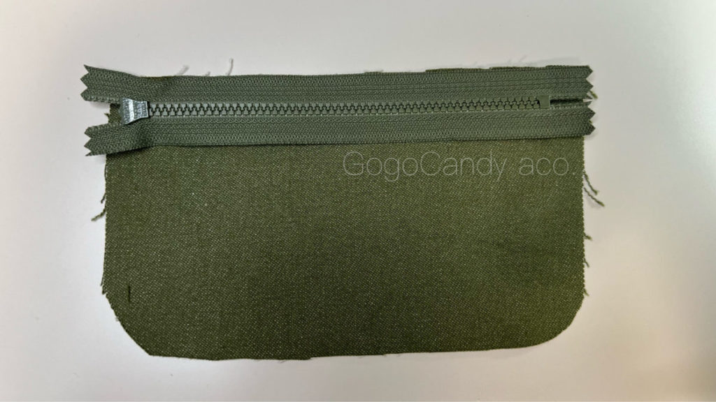 ちょうどよい長さのファスナーがなく、切って使えるコイルファスナーなどを使った場合は、この時点でファスナーが横にはみ出していると思います。