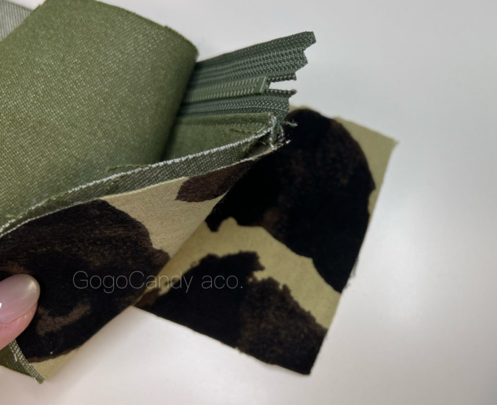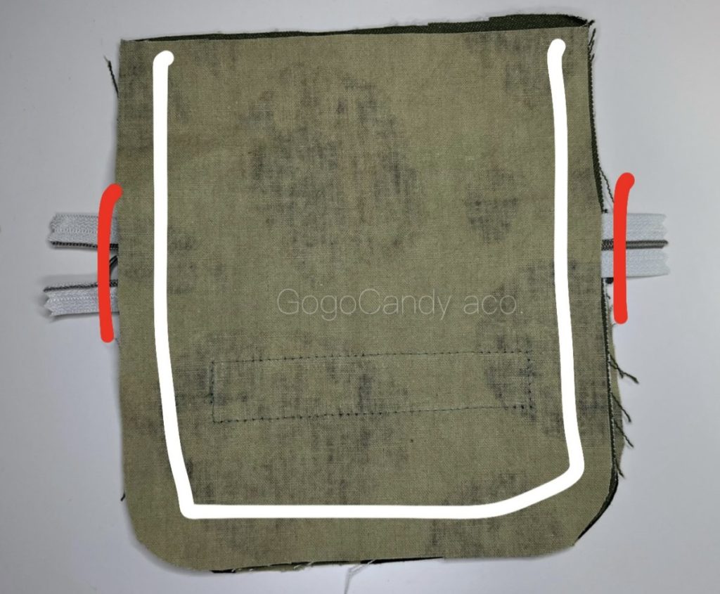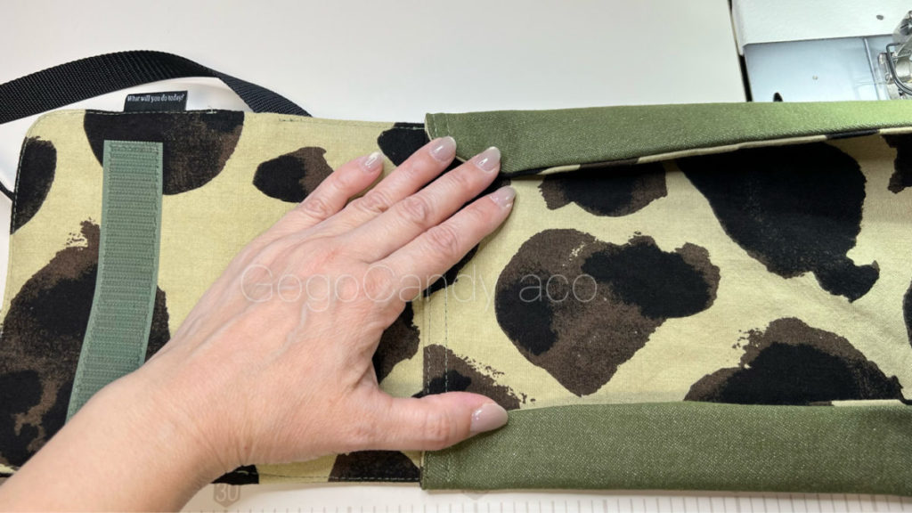 ③ フラップの内生地(面ファスナー付き)を裏向きに置く