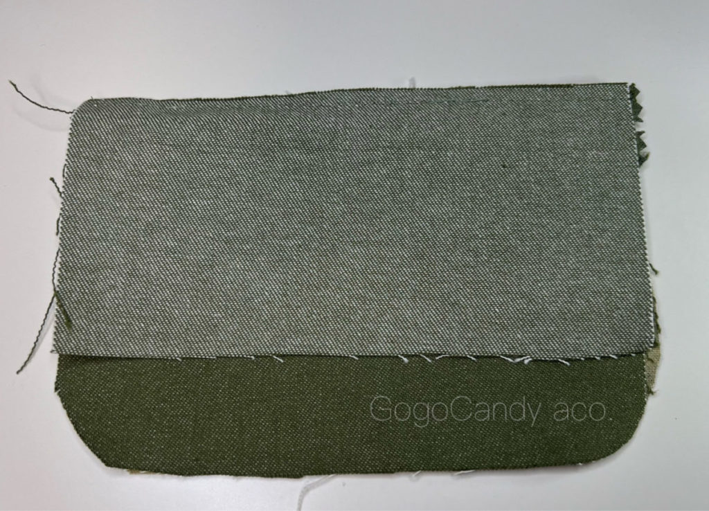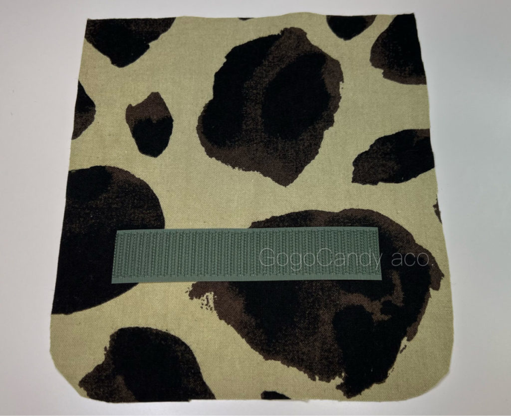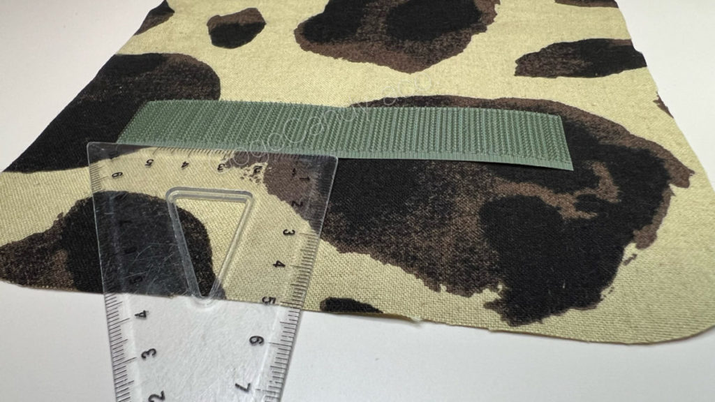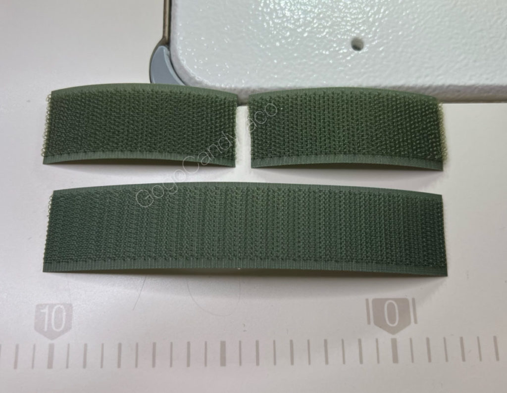 フラップの内生地2枚のうち、1枚に面ファスナーのオスを12㎝に切って使います。