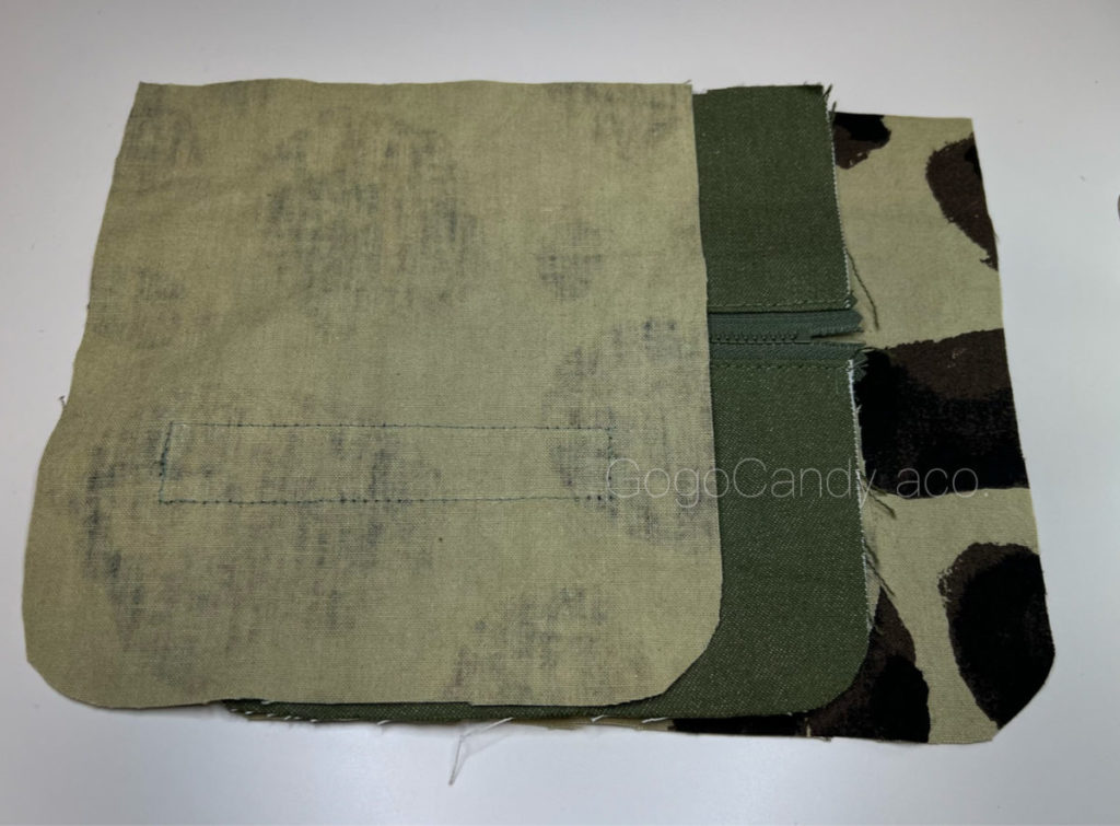 ② ファスナーを縫い付けたフラップの表面パーツを表向きに置く