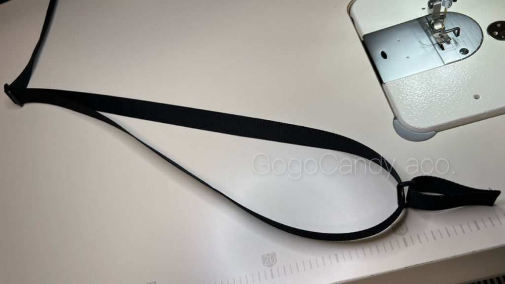 先ほど通した角カンに12㎝ほどに切ったテープを通したらショルダーベルトは出来上がり🙌